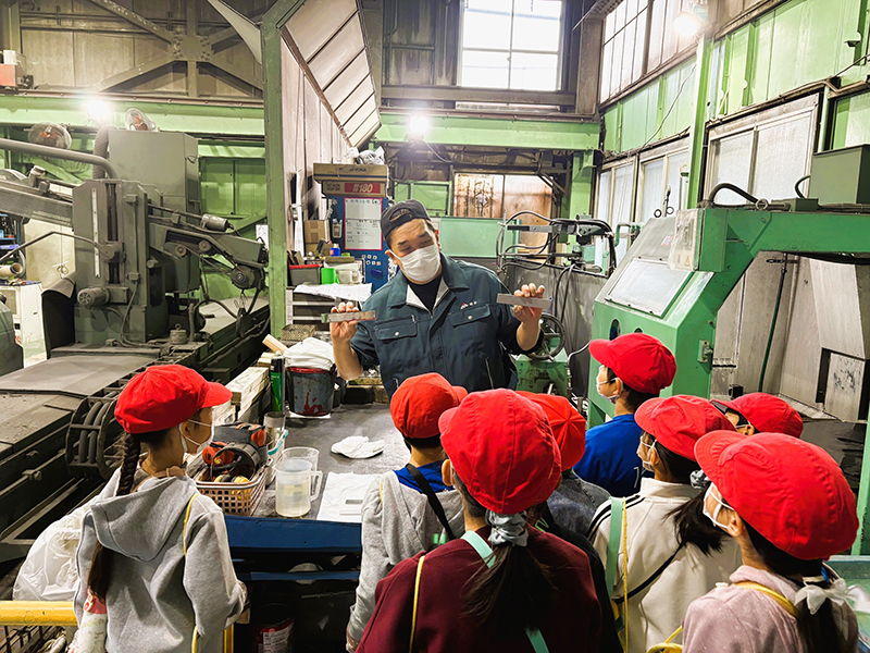 工場内の各工程の見学・実演では技術者の技に興味を持って沢山質問していただきました。