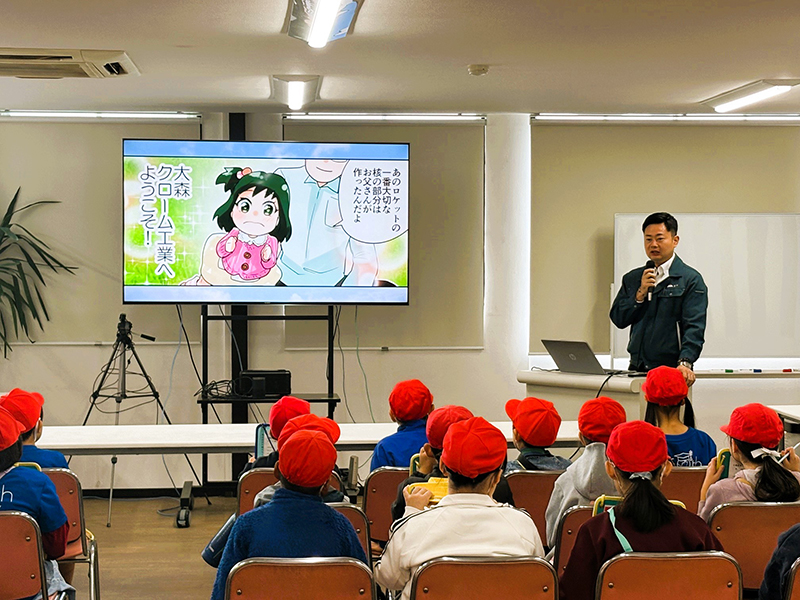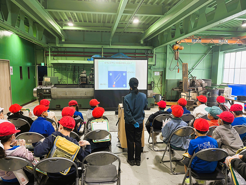 製造業や表面処理事業、当社の経営理念や今後の事業展開についてクイズ等も交えながら学習を進めました。